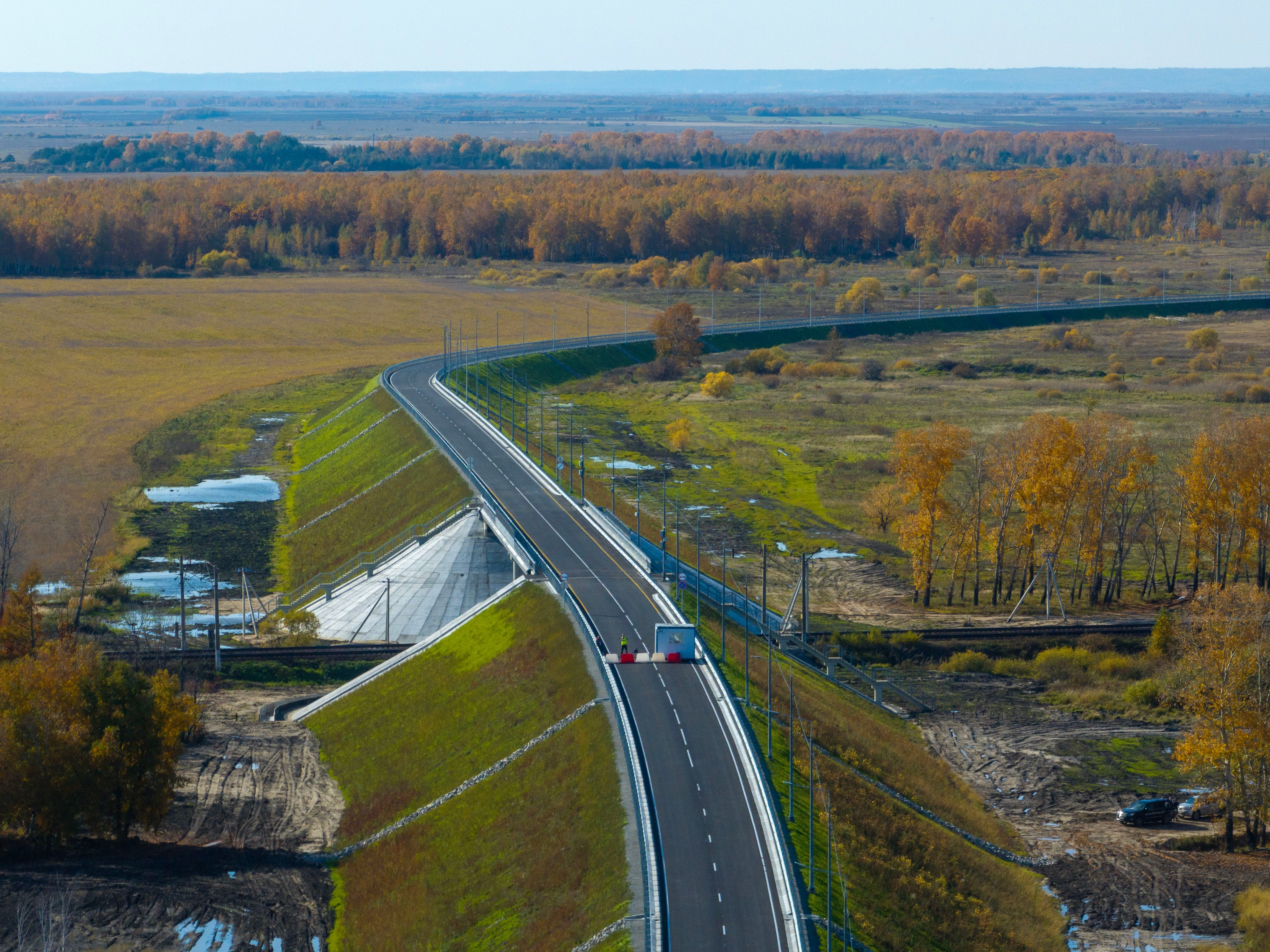 Продолжаются строительно-монтажные работы и на других объектах, многие из которых находятся в высокой степени готовности, часть мостов и путепроводов готовятся к сдаче в эксплуатацию.